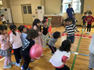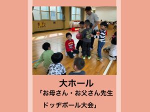 先日、さくら幼稚園に「お母さん・お父さん先生」が来てくださいました!今回はなんと、大ホールでドッヂボールをしてくださるということで、事前に流れや備品の確認をしっかり行い、ワクワクしながら当日を迎えました✨