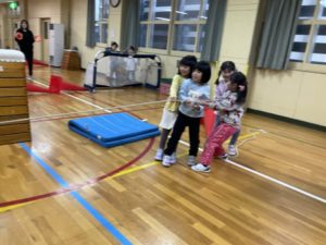 年中・年長さんは運動会での経験があるため、縄の持ち方や力の入れ方をしっかり覚えていました。